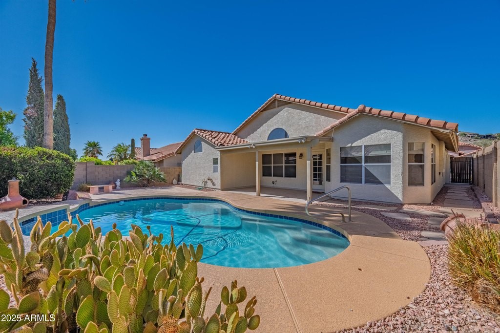 Welcome to Mountain Park Ranch! This well-maintained home offers three bedrooms and two baths, with fresh paint inside and out. Step outside to your private backyard and enjoy a sparkling pool with a water feature. The neighborhood features a community pool, tennis courts, walking paths, parks, and small mountain views. The home features its original kitchen and flooringready for your personal touch or to enjoy as-is. Perfect locationclose to the 202, shopping, and dining. Don't miss this opportunity to live in a great community.